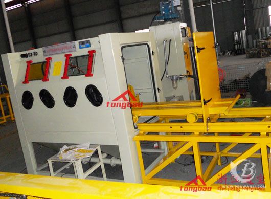 為客戶研制的專用機(jī)型噴砂設(shè)備(軌道推車式噴砂機(jī))